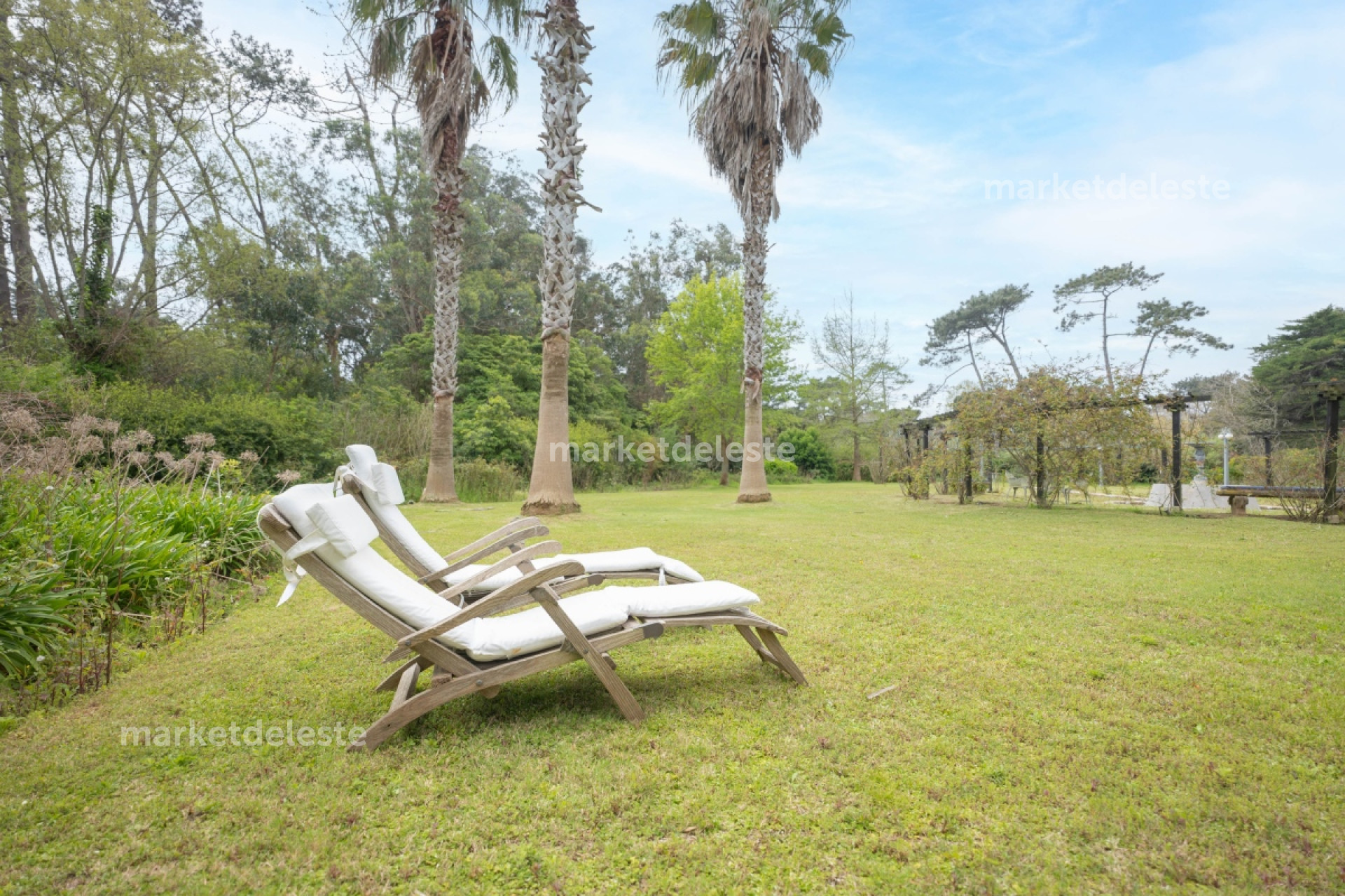 En la exclusiva zona del Golf de Punta del Este y a pasos de la playa brava. Propiedad de estilo clásico con 900 m2 construidos y 4.500 m2 de terreno. Desarrollada en dos plantas, en planta baja; amplio living comedor con estufa a leña y ventanales muy luminosos y vista al jardín. Comedor, baño social, sala de estar, cálida cocina con isla y acceso al garage mediante escalera interna, barbacoa integrada con una espectacular piscina climatizada techada. También en esta planta dos dormitorios grandes y un baño. En planta alta; dos master suites, la principal con vestidor y jacuzzi y un escritorio con baño en suite que puede utilizarse como un 5to dormitorio. En el exterior, un amplio jardín que despierta el placer de los sentidos con una importante fuente y hermosas pérgolas rodeadas de bellos rosales. Esta destacada propiedad cuenta con una excelente construcción y acabados de primera categoría que la hacen un lugar ideal para vivir todo el año!