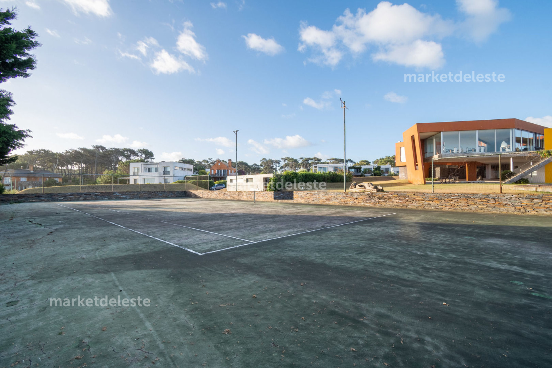 En la playa de Montoya sobre un lote alto que ofrece espectaculares vistas al mar desde todos sus ambientes . De icónica arquitectura esta propiedad ofrece confort sin igual por el gran tamaño de todos sus ambientes que se caracterizan por ser de enormes dimensiones y techos de 3 mts de altura en sus dos niveles . Convidando hormigón , vidrio y pisos en madera en muchas partes de la casa . En su nivel superior se encuentra toda el área social con sus mega livings, comedor y office , cocina con mesa desayunador . Toda la casa con losa radiante sectorizada, carpintería en aluminio de piso a techo y doble vidrio, también en este nivel se encuentra una master suite de 140 mt2 con un baño pocas veces visto . En el nivel inferior encontramos una recepción moderna con su escalera que nos eleva a los espacios sociales y tres dormitorios en suite de gran confort. En el jardín encontramos una gran piscina de gran tamaño , barbacoa , piscina climatizada cerrada y cancha de tenis reglamentaria. Casa de caseros. Si su búsqueda en algún punto coincide con esta majestuosa casa permítase sorprenderse coordinando con nosotros para conocerla