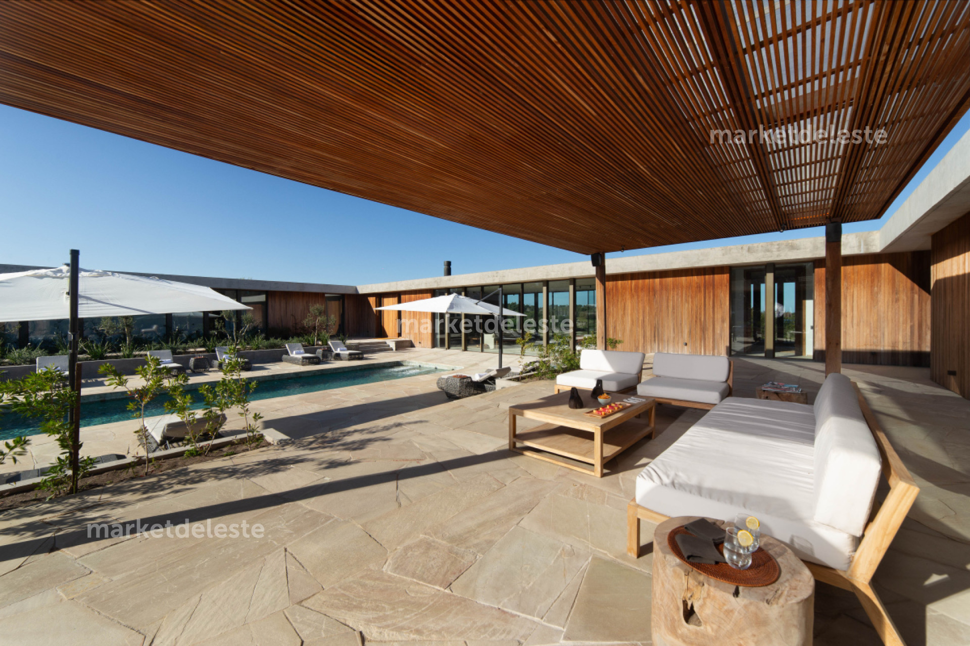 Construida al detalle mayormente en una planta, es la máxima expresión de calidad y buen gusto. Al conocerla van a descubrir una arquitectura funcional y perfectamente planificada, donde todos sus ambientes se enriquecen de ventanales y espejos de agua a la naturaleza, mezclando materiales nobles como piezas de piedra que fueron minuciosamente cortadas y colocadas conectando un in-out a la perfección, madera de lapacho en sus paredes interiores y exteriores mas hormigón y hierro. Con sus 1060m2 construidos internos y una superficie total de 3000 m2 de radio constructivo , cubierto en su superficie total en piedra. En su ingreso encontramos una área social ( living comedor ) rodeado de ventanales altos que conectan el paisaje con la increíble área de pileta, al mejor estilo de un hotel posada premium , estar tv con terraza exterior propia , moderna y amplia cocina con isla, 4 dormitorios en suite , todos ellos con su walking closet , terraza propia, enmarcadas por el estanque y paisajismo.