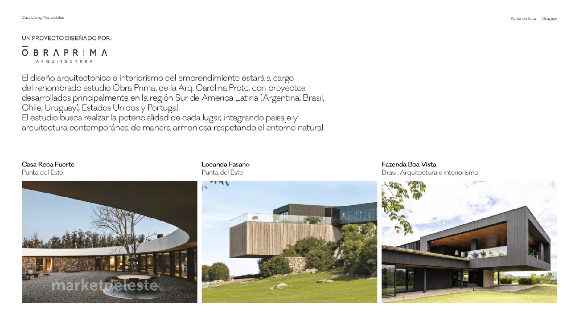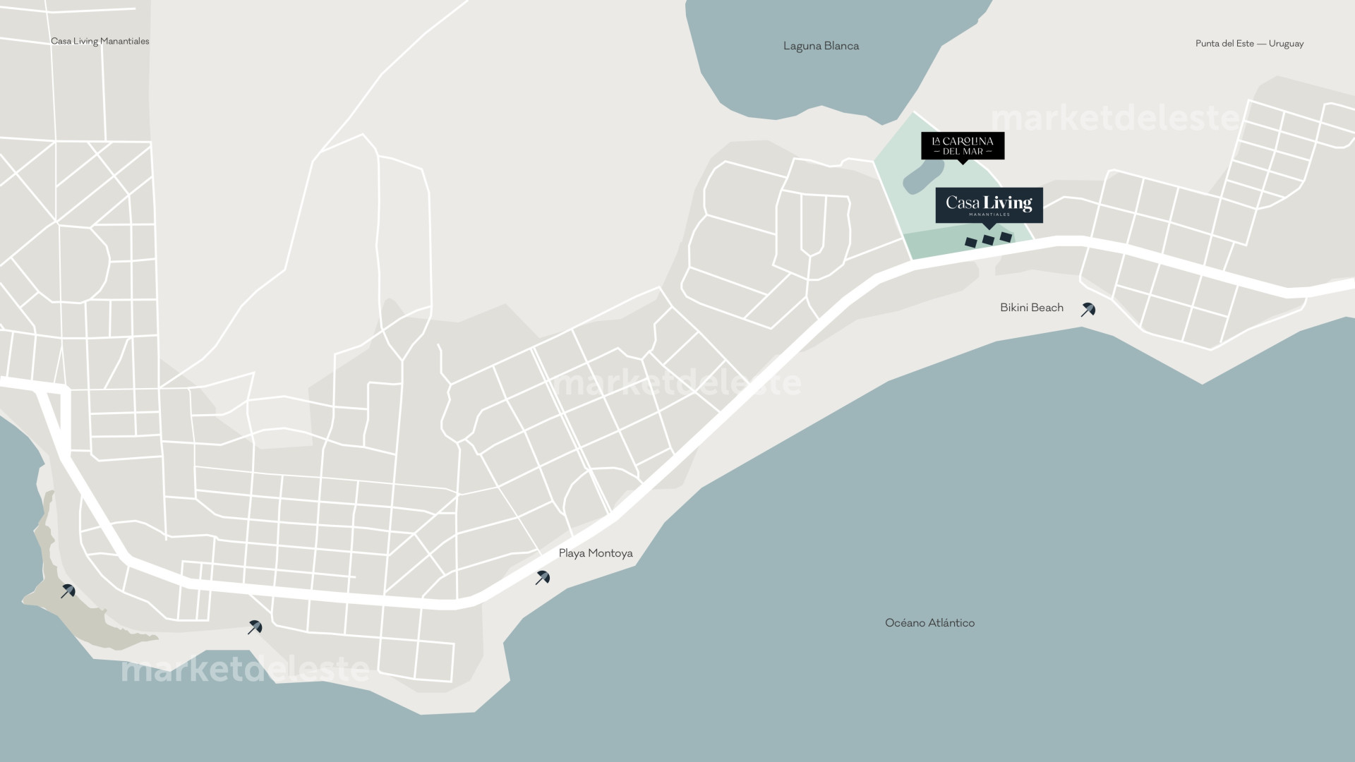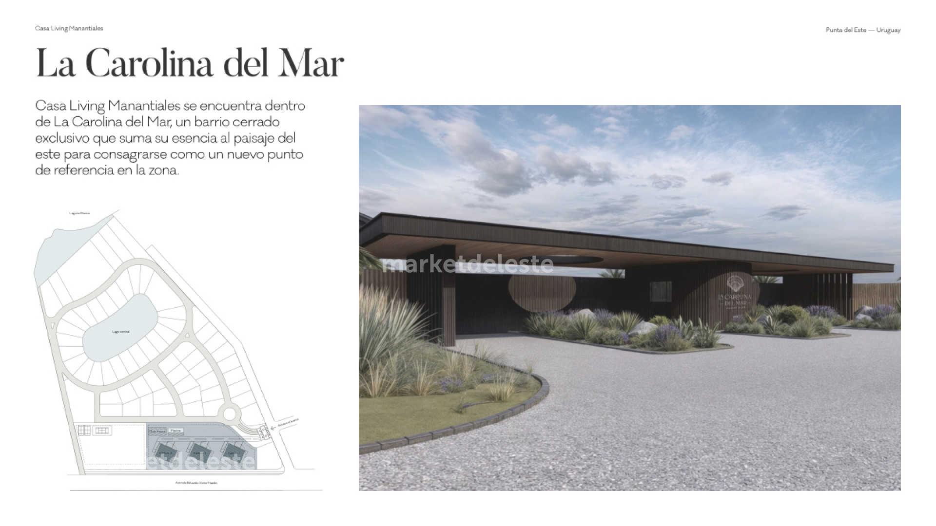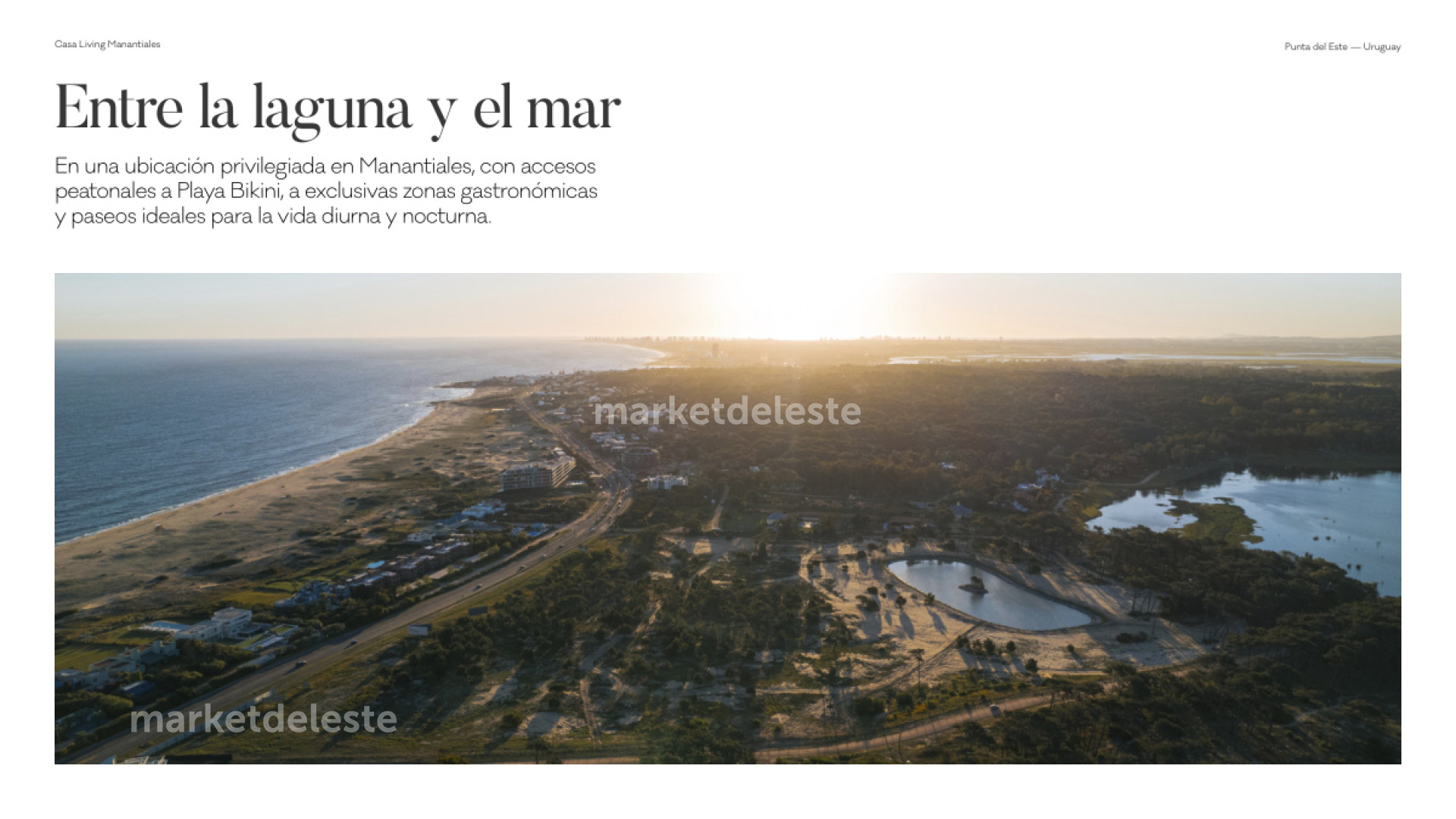 Entre la laguna y el mar en una zona privilegiada en Manantiales, con accesos peatonales a la Playa Bikini, a exclusivas zonas gastronómicas y paseos ideales para la vida diurna y nocturna. Casa Living Manantiales se encuentra dentro de La Carolina del Mar, un barrio cerrado exclusivo que suma su esencia al paisaje del este para consagrarse como un nuevo punto de referencia para la zona. Ocupará la primera linea, con mas de 300 metros lineales sobre la Ruta 10, entre la laguna y el océano.